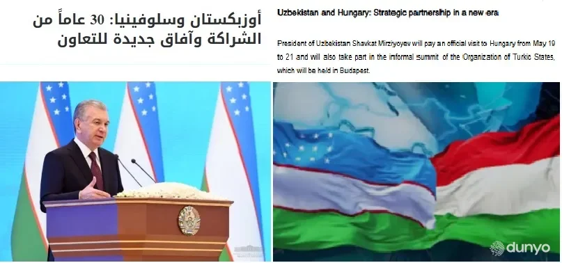 QOHIRA, 23-may. /"Dunyo" AA/. Misrning yetakchi ommaviy axborot vositalari O'zbekiston Prezidenti Shavkat Mirziyoyevning 19-22-may kunlari Vengriya va Sloveniyaga bo'lib o'tayotgan rasmiy tashrifini keng yoritmoqda, deb xabar qilyapti "Dunyo" AA muxbiri.