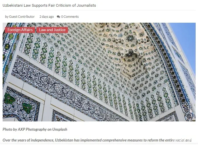 BRYUSSЕL, 27-oktyabr. /«Dunyo» AA/. Yevropaning "EU Political Report" sayti sahifasida "O'zbekistonda qonun jurnalistlarning adolatli tanqidini qo'llab-quvvatlaydi" sarlavhali maqola e’lon qilindi, deb xabar qilmoqda «Dunyo» AA muxbiri.