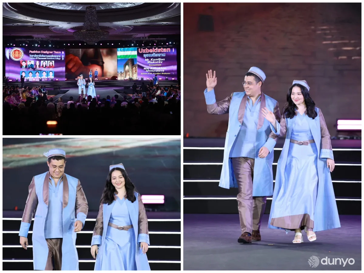 E'tiborlisi, O'zbekistonning Bangkokdagi Bosh konsulxona katta hisobchisi va uning rafiqasining Tailand va o'zbek ipaklari mohirona uyg'unlashtirilgan milliy uslubdagi liboslarda podiumga chiqishdi. Bu nafis liboslar "Nakhon Si Thammarat Vocational" kollejida moda dizayneri yo'nalishida tahsil olayotgan talabalar tomonidan Tailand va O'zbekiston o'rtasidagi madaniy uyg'unlikni o'zida mujassam etgan ajoyib hamkorlik ramzi sifatda ishlab chiqildi.