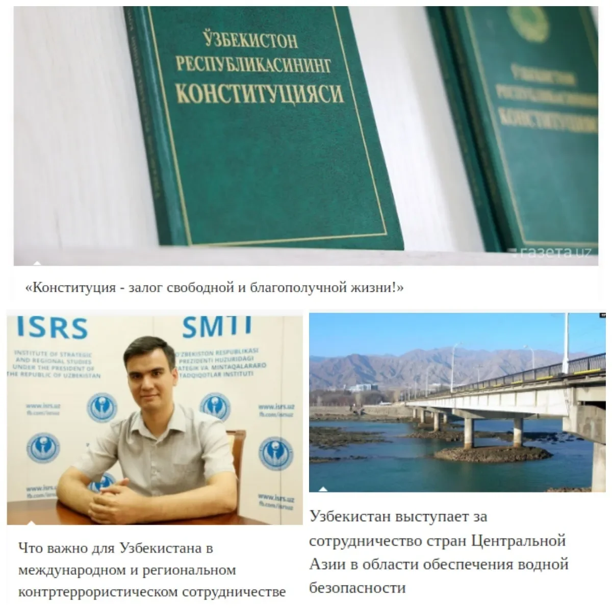 Navbatdagi "O'zbekiston Markaziy Osiyo mamlakatlari o'rtasida suv xavfsizligini ta'minlash sohasida hamkorlik tarafdori" sarlavhali maqolada esa so'nggi yillarda suv xavfsizligini ta'minlash masalasi Markaziy Osiyo mintaqasi uchun muhim ahamiyat kasb etayotgani ta'kidlangan.