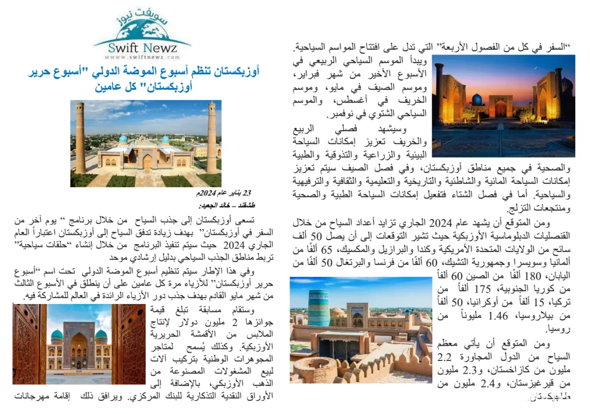 JIDDA, 26-yanvar. /"Dunyo" AA/. Saudiya Arabistonining «Swift News» elektron nashrida «O'zbekistonda har ikki yilda bir marta «Uzbekistan Silk Week» xalqaro moda haftaligi o'tkaziladi» sarlavhali maqola joylashtirildi, deb xabar bermoqda "Dunyo" AA muxbiri.