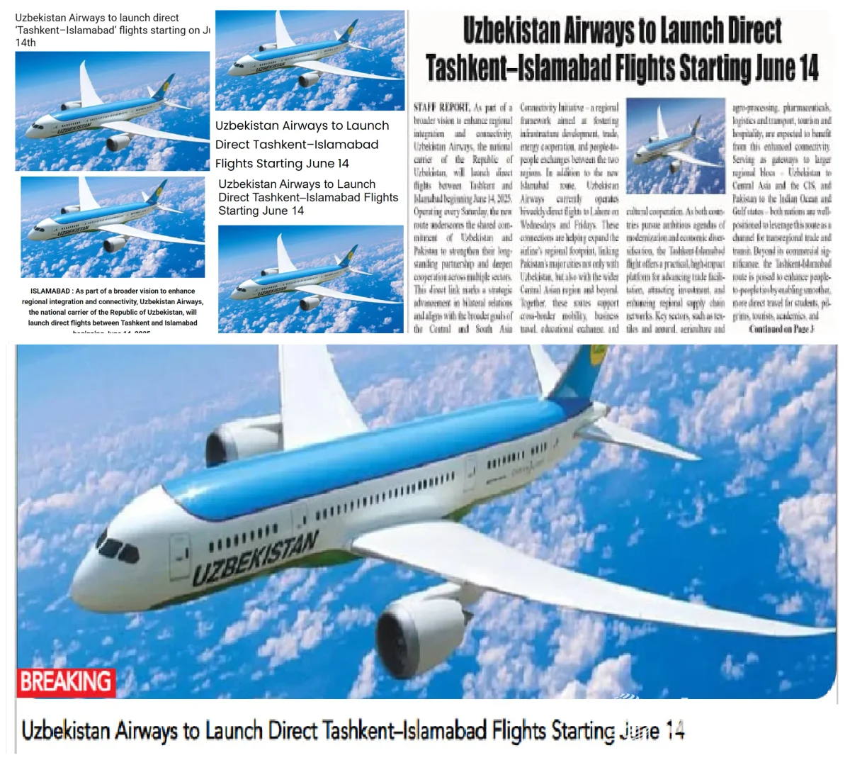 Shuningdek, nashrlarda "Uzbekistan Airways"ning Lahor yo'nalishida haftasiga ikki marta muntazam amalga oshirilayotgan reyslari haqida ham ham ta'kidlangan. "Aviakompaniyaning yangi Islomobod yo'nalishi Pokistonga parvozlar geografiyasini kengaytirayotgani, Janubiy Osiyo mintaqaviy aviabozoriga jadal kirib kelish borasidagi navbatdagi ijobiy qadamidir. Mazkur parvozlar ikki davlat o'rtasidagi ishbilarmonlar, tadbirkorlar va turistlar uchun qulaylik yaratadi, trans'hududiy savdo va transport tizimlarini rivojlantirishga yordam beradi, shuningdek, talabalar, ziyoratchilar va o'zaro delegatsiyalar bilan almashish uchun ham muhim transport vositasiga aylanadi va eng muhimi madaniy almashinuv sohalaridagi hamkorlikni chuqurlashtiradi", – deya urg'ulangan materiallarda.