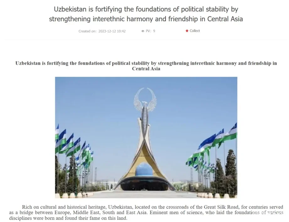 Xitoyning "Psearcher" jurnali: O'zbekiston Markaziy Osiyoda siyosiy barqarorlik, millatlararo totuvlik va do'stona muhit asoslarini mustahkamlamoqda