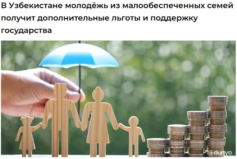 "2026-yil 1-fevraldan boshlab kam ta'minlangan oilalar reyestriga kiritilgan yoshlar davlat bilan qo'shimcha moliyaviy yordam va imtiyozlarni nazarda tutuvchi ijtimoiy shartnomalar tuzishi mumkin. Buning uchun ta'lim olishni uzluksiz ravishda amalga oshirib borishi, ta'lim jarayonida ijobiy o'zlashtirish ko'rsatkichlariga erishishi, tadbirkorlik yoki o'zini o'zi band qilish asosida faoliyatini yo'lga qo'yishi yoki xorijiy tillarni o'zlashtirish bo'yicha kamida B1 darajasiga erishishi kerak", – deya ma'lumot berilgan "Karavan Info" AA maqolasida.