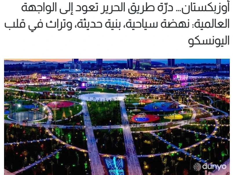 AL-KUVAYT, 6-dekabr. /“Dunyo” AA/. Kuvaytning arab tilidagi “Q8 Press” elektron portalida “O‘zbekiston... Buyuk Ipak yo‘lining durdonasi yana global eʼtibor markaziga qaytmoqda” nomli maqola eʼlon qilindi, deb xabar bermoqda “Dunyo” AA muxbiri.