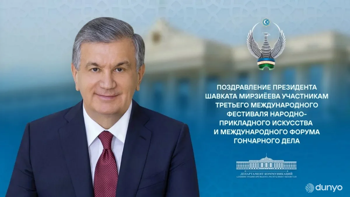 O'zbekiston Prezidenti Shavkat Mirziyoyevning Uchinchi Xalqaro hunarmandchilik festivali va Xalqaro kulolchilik forumi ishtirokchilariga tabrigi