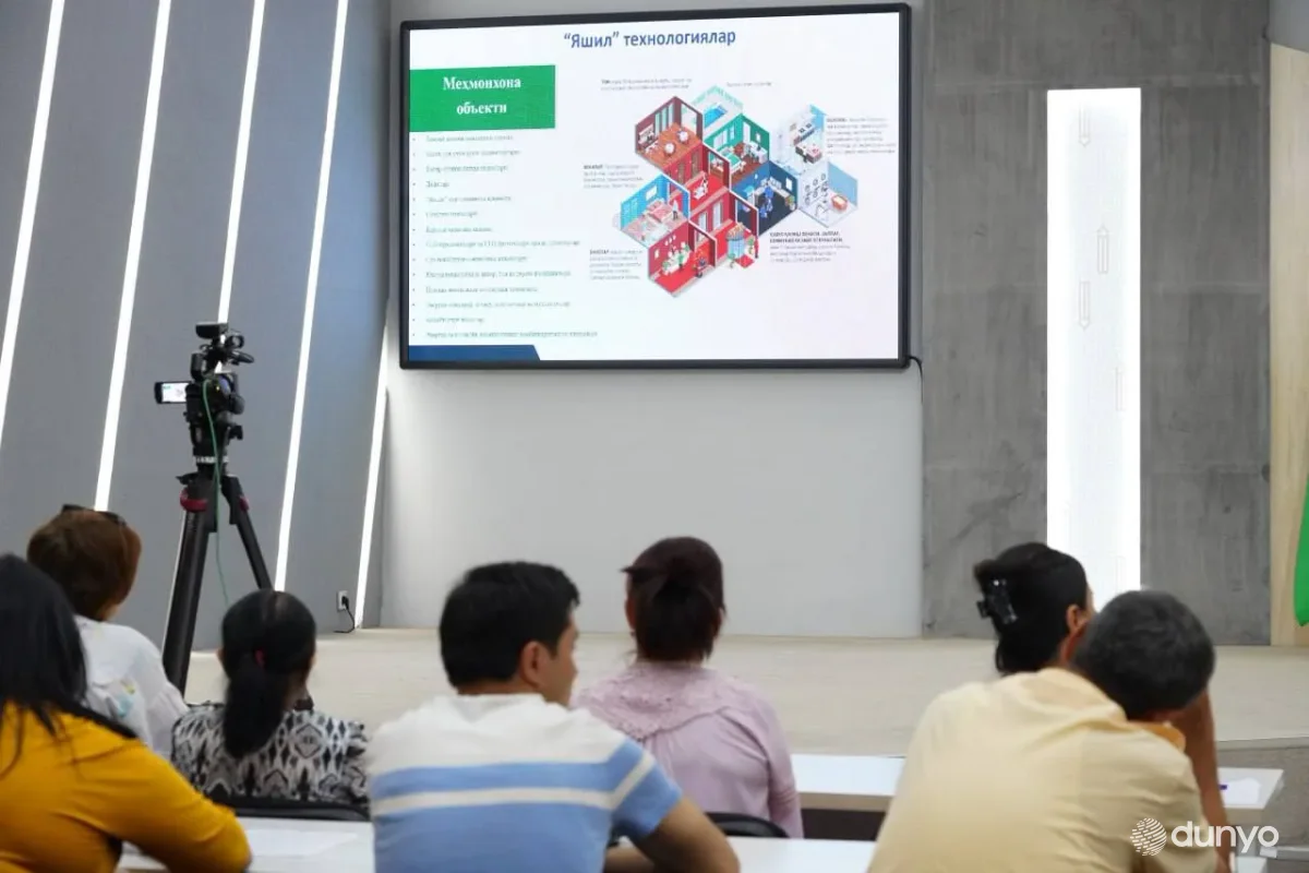 "Bugungi kunda bank bosh ofisi hamda hududiy tarmoqlari binolariga umumiy quvvati 1480 kVt bo'lgan quyosh panellari o'rnatilgan, – dedi Bobur Sultonmurodov. – Ular yordamida 2023-yilda 1,4 mln. kVt soat muqobil elektr energiyasi ishlab chiqarilib, natijada 1 mlrd. 256 mln. so'm iqtisod qilindi. Bundan tashqari, bank tizimida qog'oz iste'molini yiliga 50 foizga qisqartirish, bank tarmoqlari atrofiga xodimlar uchun veloturargohlar barpo etish hamda manzarali va mevali daraxtlar o'tkazish choralari ko'rildi".