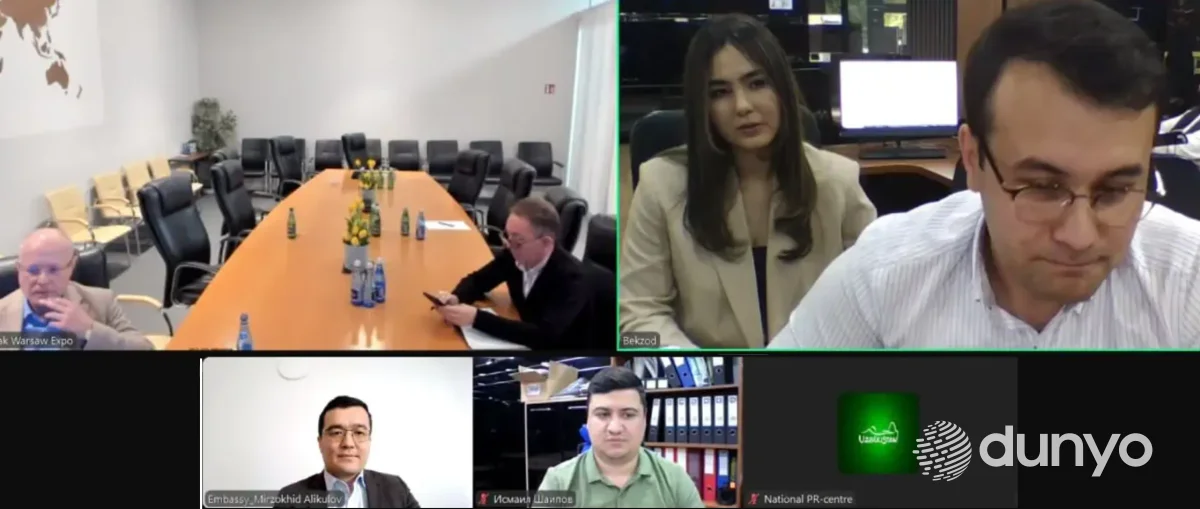 VARSHAVA, 19-aprel. /"Dunyo" AA/. O'zbekiston elchixonasi ko'magida Turizm qo'mitasi vakillari hamda Polshaning "Ptak Warsaw Expo" kompaniyasi prezidenti Tomash Sebula o'rtasida onlayn uchrashuv tashkil etildi, deb xabar qilmoqda "Dunyo" AA muxbiri.