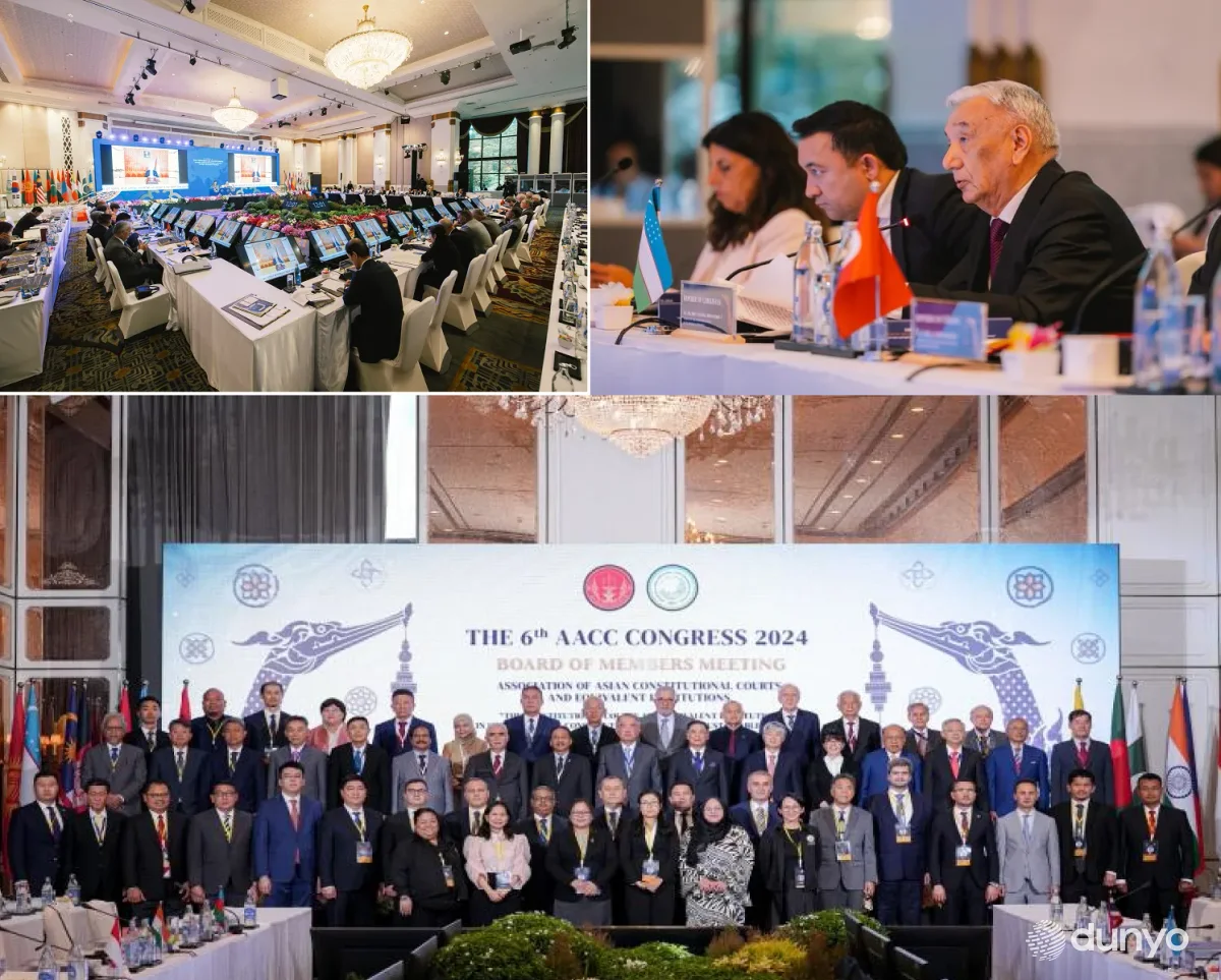 БАНГКОК, 26 сентябрь. /"Дунё" АА/. Ўзбекистон Конституциявий суди раиси Мирзо-Улуғбек Абдусаломов бошчилигидаги мамлакатимиз делегацияси 17-21 сентябрь кунлари Бангкок шаҳрида бўлиб ўтган Конституциявий судлар ва уларга тенглаштирилган институтлар Осиё ассоциацияси (ААCC)нинг 6-Конгресси ва аъзолари кенгаши (BoMM) йиғилишида иштирок этди, деб хабар қилмоқда "Дунё" АА мухбири.