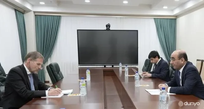 ТОШКЕНТ, 26 январь. /«Дунё» АА/. Ўзбекистон ташқи ишлар вазирининг ўринбосари Музаффар Мадраҳимов кеча мамлакатимиздаги дипломатик миссиясини якунлаётган Бельгия элчиси (қароргоҳи Москва шаҳрида) Марк Михельсон билан учрашув ўтказди, деб хабар бермоқда «Дунё» АА мухбири.