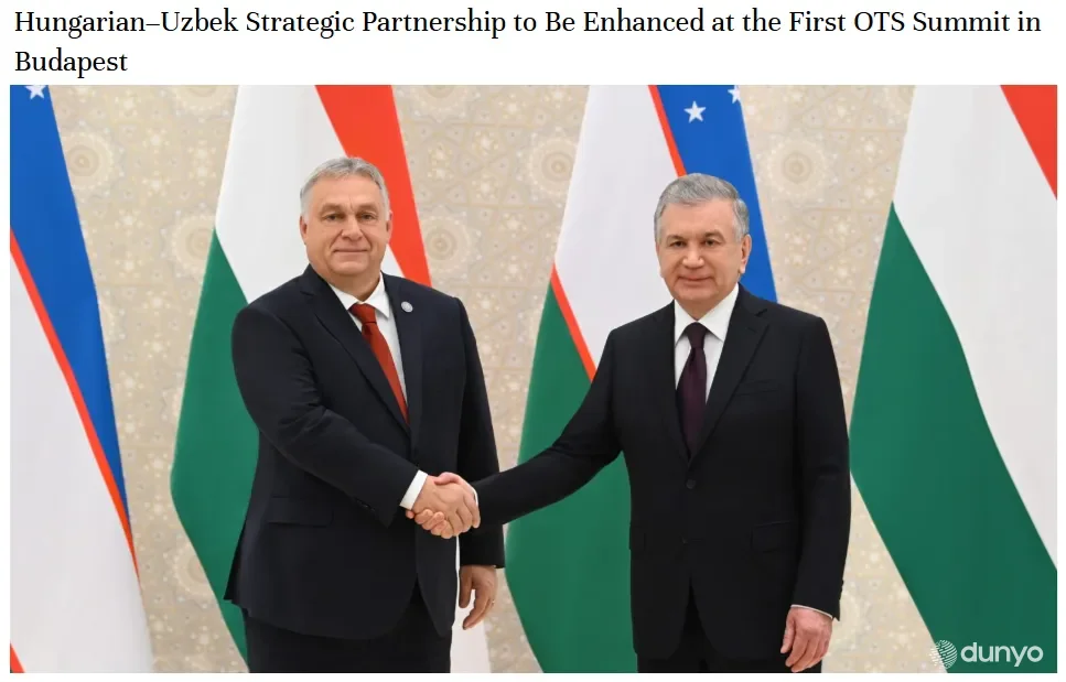 БУДАПЕШТ, 21 май. /"Дунё" АА/. Венгриянинг "Hungarian Conservative" ахборот-таҳлилий нашрида "Будапештдаги биринчи ТДТ саммитида Венгрия-Ўзбекистон стратегик ҳамкорлиги кенгайтирилади" сарлавҳали мақола эълон қилинди, деб хабар қилмоқда "Дунё" АА мухбири.