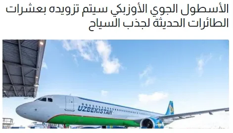 АР-РИЁЗ, 21 апрель. /"Дунё" АА/. Саудия Арабистонининг "Al Harir" газетасида "Сайёҳларни жалб қилиш учун Ўзбекистон авиапарки ўнлаб замонавий самолётлар билан тўлдирилади" сарлавҳали мақола эълон қилинди, деб хабар қилмоқда "Дунё" АА мухбири.