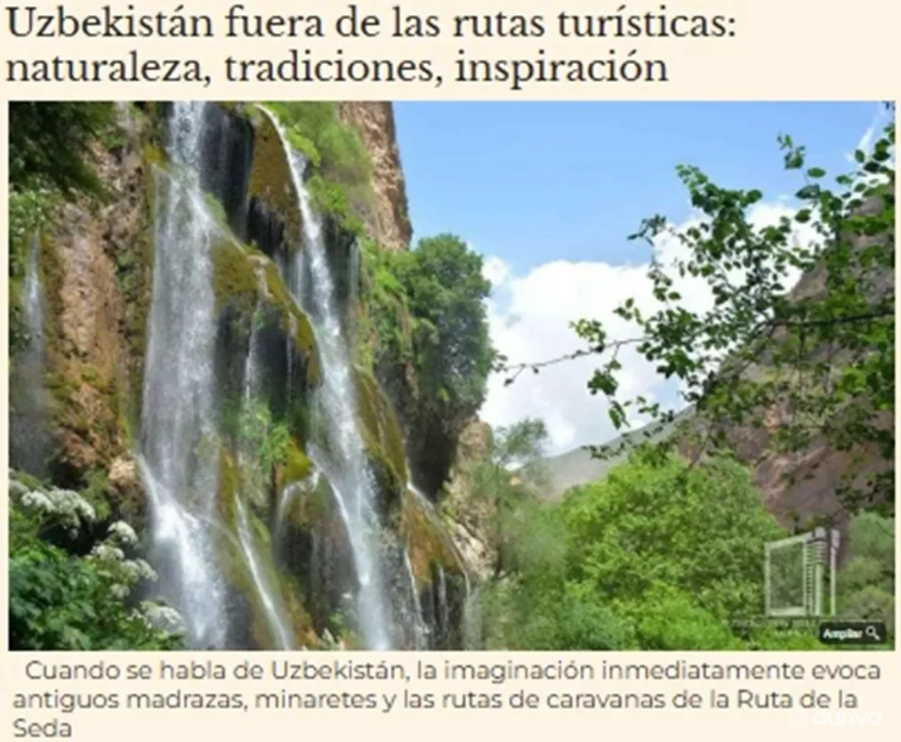 МАДРИД, 13 май. /"Дунё" АА/. Испаниянинг "El Mundo Financiero" электрон нашрида Ўзбекистон сайёҳлик салоҳиятига бағишланган мақола эълон қилинди, деб хабар қилмоқда "Дунё" АА мухбири.