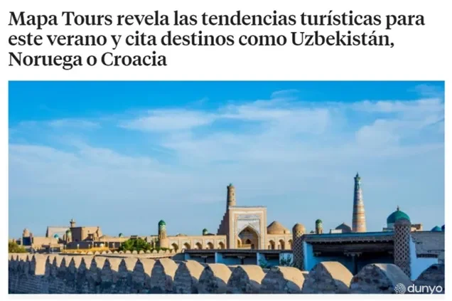 МАДРИД, 10 июль. /"Дунё" АА/. Испаниянинг оммабоп "La Vanguardia" газетасида "Mapa Tours" 2025 йил ёзининг сайёҳлик тенденцияларини очиб беради: Ўзбекистон, Норвегия ва Хорватия машҳур йўналишлар қаторида" сарлавҳали мақола чоп этилди, деб хабар қилмоқда "Дунё" АА мухбири.