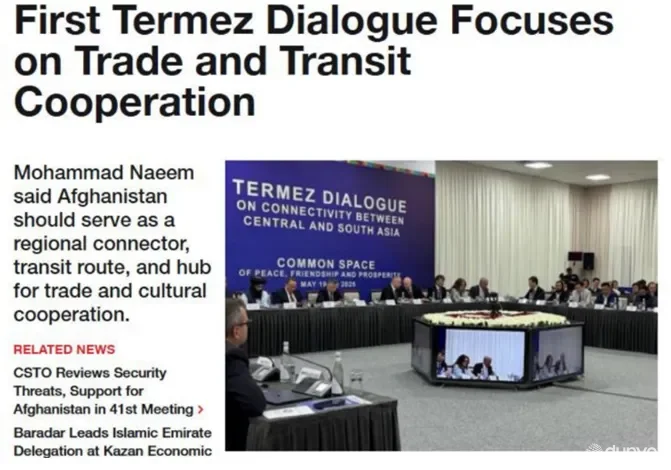 "Фаровон, дўст ва тинч макон барпо этиш" мавзусидаги Марказий ва Жанубий Осиё ўртасидаги ўзаро боғлиқлик бўйича Термиз мулоқотининг биринчи йиғилишида 20 дан ортиқ мамлакатдан сиёсий, иқтисодий ва савдо вакиллари иштирок этди. Афғонистонни ташқи ишлар вазири вазифасини бажарувчи ўринбосари Муҳаммад Наим Вардак бошчилигидаги делегация тақдим этди", – дейилган мақолада.