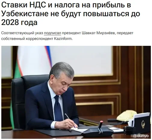 "Казинформ" халқаро ахборот агентлиги маълумотларига кўра, Ўзбекистонда даромад солиғи ва ҚҚС ставкалари 2028 йилгача оширилмайди.