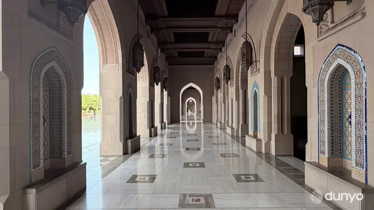 Маскат шаҳридаги асосий диққатга сазовор жойларидан бири бўлган Султон Қобус масжиди ҳовлисидаги айвон деворларининг ички безакларида Темурийлар даври меъморчилигининг безак санъати намуналаридан фойдаланилган.