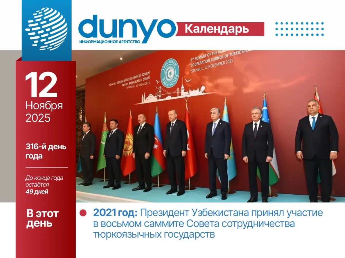 «Дунё» АА тақвими: 2025 йил 12 ноябрь