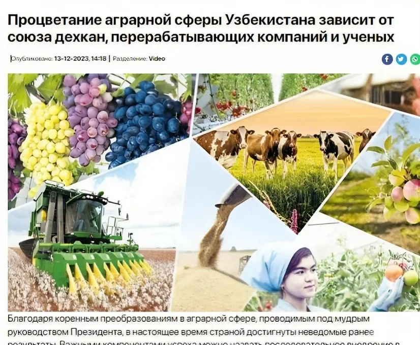 Қайд этилишича, мамлакатнинг ташаббускор фермерлар кўп йиллик меҳнат тажрибаси ва олимларнинг замонавий билимлари, тинимсиз саъй-ҳаракатларига таяниб, Ўзбекистон 2023 йилда ҳам юксак натижаларга эришди.