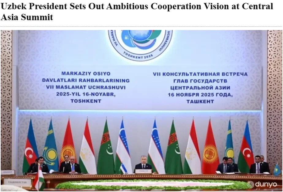 Нашрда шу йил 16 ноябрь куни Ўзбекистон Президенти Шавкат Мирзиёев раислигида Марказий Осиё давлатлари раҳбарларининг еттинчи Маслаҳат учрашуви бўлиб ўтгани хабар қилинган.
