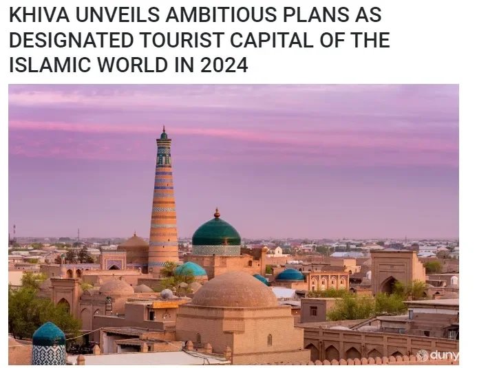 Мақолада Хива шаҳри ўзининг бой меъморий мероси ва жўшқин маданиятини намойиш этиш мақсадида 2024 йилда ислом дунёсининг туризм пойтахти бўлишга ҳозирлик кўраётгани қайд этилган.
