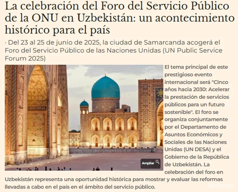 "El Mundo Financiero": БМТ Давлат хизмати форумининг Ўзбекистонда ўтказилиши – мамлакатга соҳадаги ислоҳотларни намойиш этиш имконини беради