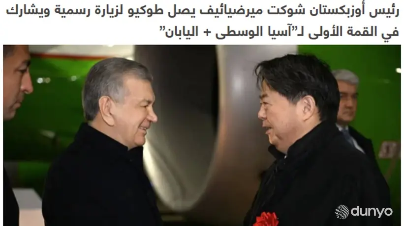 • 62АР-РИЁЗ, 22 декабрь. /“Дунё” АА/. Ўзбекистон Республикаси Президенти Шавкат Мирзиёевнинг Японияга расмий ташрифи ҳамда ташриф доирасида ташкил этилган турли учрашувлар ҳақида жаҳондаги етакчи ОАВда кўплаб материаллар эълон қилинди, деб хабар қилмоқда “Дунё” АА мухбири.