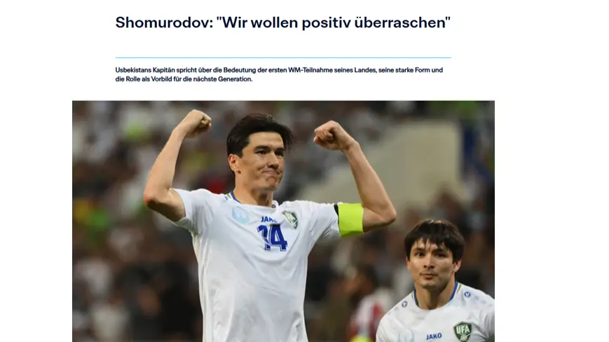БЕРЛИН, 14 январь. / “Дунё” АА/. Ўзбекистон миллий терма жамоаси сардори Элдор Шомуродов ФИФАга берган эксклюзив интервьюсида жамоанинг 2026 йилги жаҳон чемпионатига тайёргарлиги ва келажакдаги режалари ҳақида гапирди, деб хабар бермоқда “Дунё” АА мухбири.