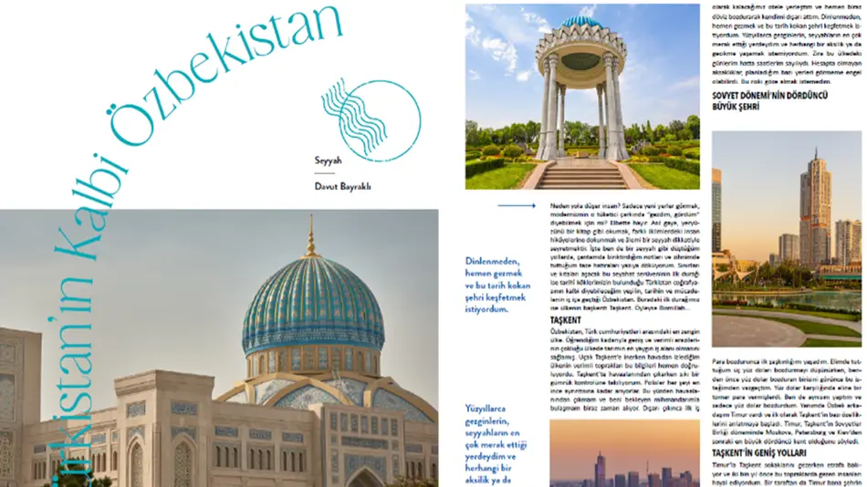 • 45АНҚАРА, 12 февраль. /“Дунё” АА/. Туркия ёшлари орасида оммалашган ва нуфузли бўлган “Genç Okur” (“Ёш ўқувчи”) журналида туркиялик сайёҳ Давуд Байраклининг Ўзбекистонга қилган саёҳати ҳақидаги таассуротлари ҳамда мамлакатимизнинг туризм салоҳиятига бағишланган мақоласи эълон қилинди, деб хабар қилмоқда “Дунё” АА мухбири.