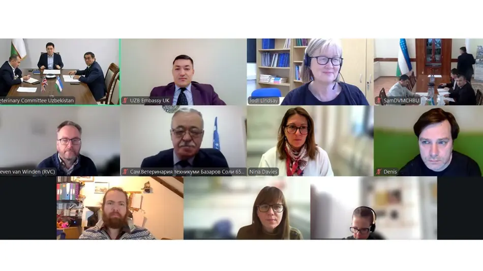 ЛОНДОН, 15 январь. /“Дунё” АА/. Лондондаги Қироллик ветеринария коллежи, Ўзбекистон Қишлоқ хўжалиги вазирлиги ҳузуридаги Ветеринария ва чорвачиликни ривожлантириш қўмитаси, Самарқанд давлат ветеринария медицинаси, чорвачилик ва биотехнологиялар университети масъуллари иштирокида онлайн учрашув ўтказилди, деб хабар қилмоқда “Дунё” АА мухбири.