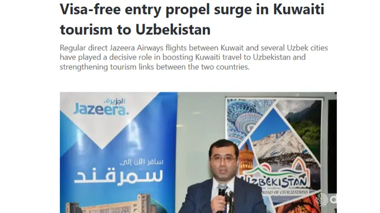“Times Kuwait” газетаси: Ўзбекистонда Кўрфаз араб давлатлари учун 30 кунлик визасиз режим сайёҳлар сонини сезиларли даражада оширди