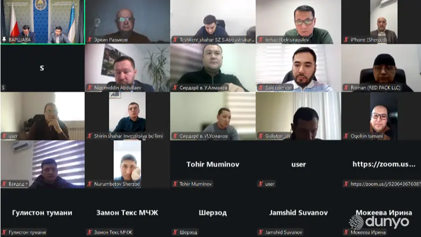 ВАРШАВА, 19 январь. /“Дунё” АА/. Ўзбекистон элчихонаси томонидан экспорт салоҳиятини ошириш бўйича берилган топшириқлар ижроси доирасида мамлакатимиздаги экспортёр компаниялар вакиллари билан онлайн учрашув ўтказилди, деб хабар қилмоқда “Дунё” АА мухбири.