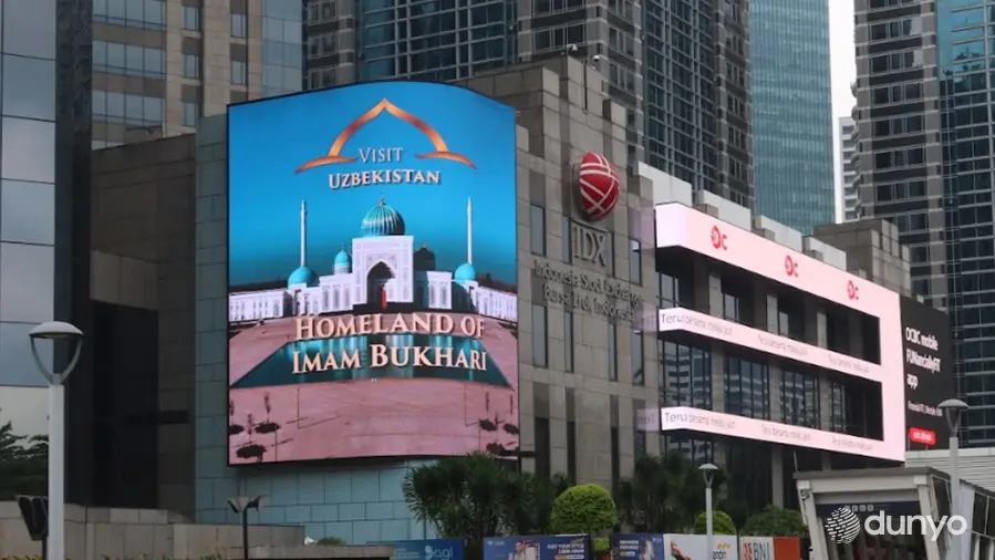 Унда Жакартанинг энг йирик жамоат ва бизнес ҳудудларида жойлашган замонавий LED экранларда “Visit Uzbekistan – Homeland of Imam Bukhari” ягона бренди остида тайёрланган видеоролик намойиш қилинди.
