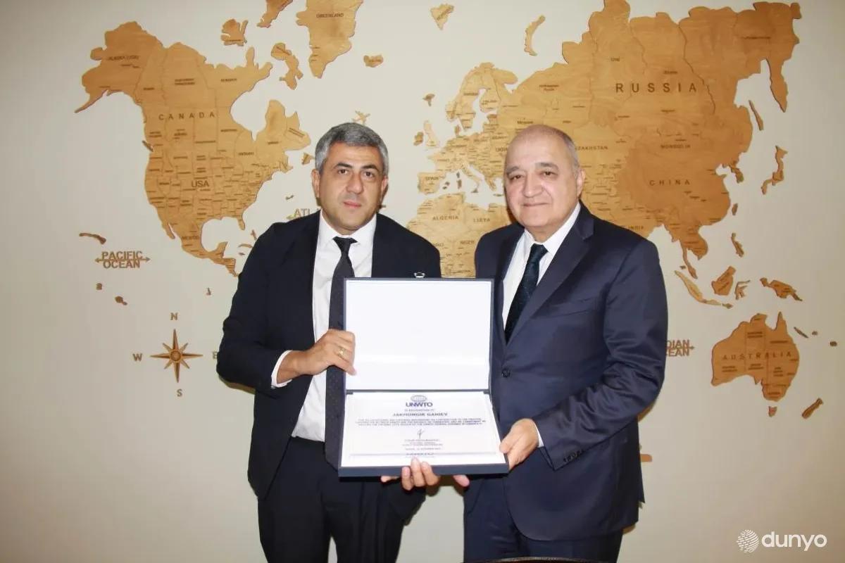 Учрашув сўнгида Ўзбекистон ва Бутунжаҳон сайёҳлик ташкилоти ўртасидаги ҳамкорликни ривожлантиришга қўшган ҳиссаси учун элчи Жаҳонгир Ғаниевга ЮНВТО эсдалик нишони топширилди.