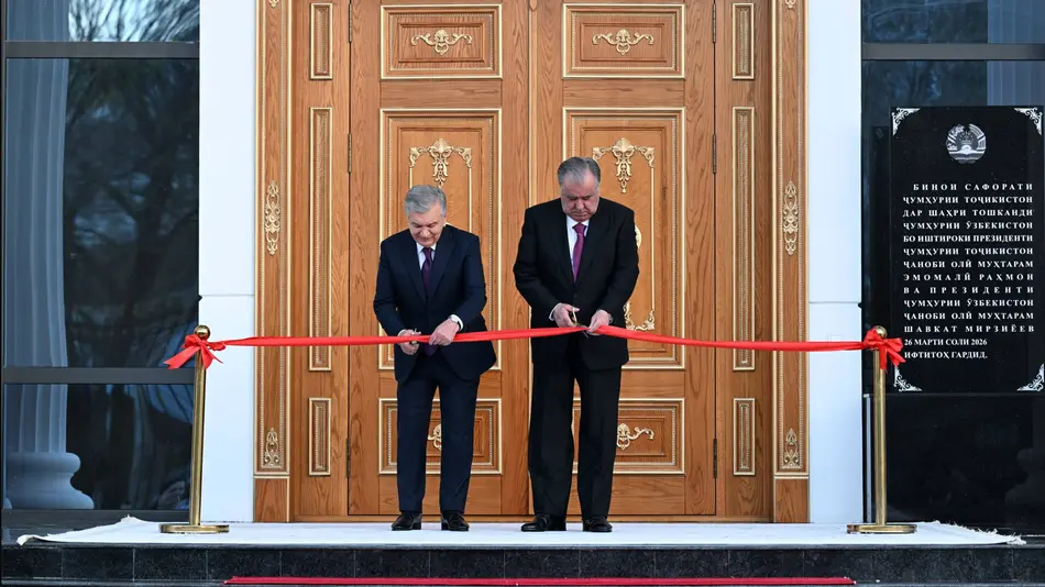 Давлатимиз раҳбари матбуот хизмати маълумотига кўра, Президентлар Шавкат Мирзиёев ва Эмомали Раҳмон рамзий тасмани кесиб, дипломатик ваколатхонанинг янги биносини тантанали равишда очдилар.