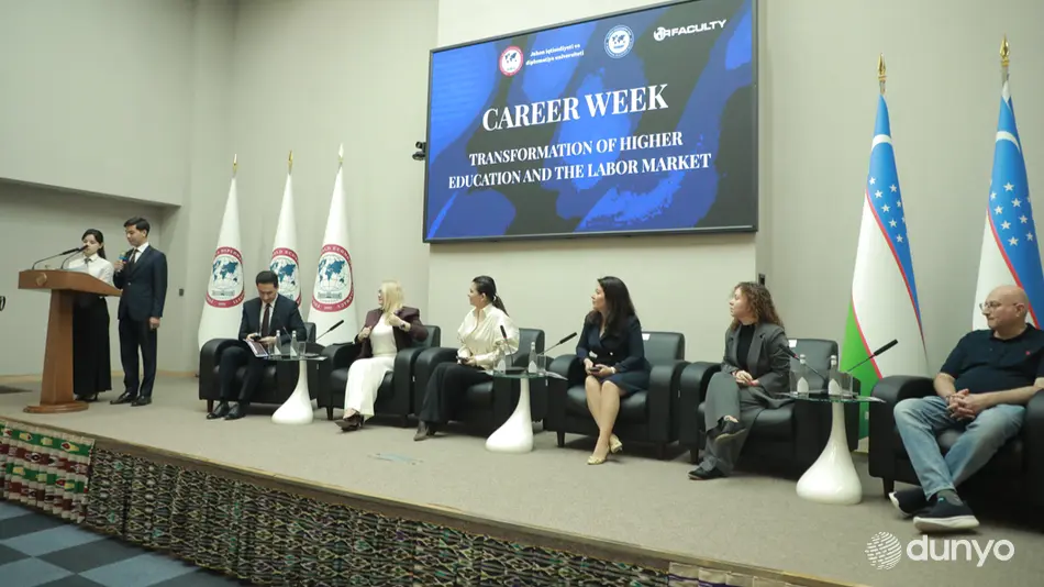 • 23ТОШКЕНТ, 21 апрель. /“Дунё” АА/. Бугун Жаҳон иқтисодиёти va дипломатия университетида анъанавий “UWED Career Week 2026” карьера ҳафталигининг тантанали очилиш маросими бўлиб ўтди, деб хабар бермоқда “Дунё” АА мухбири.